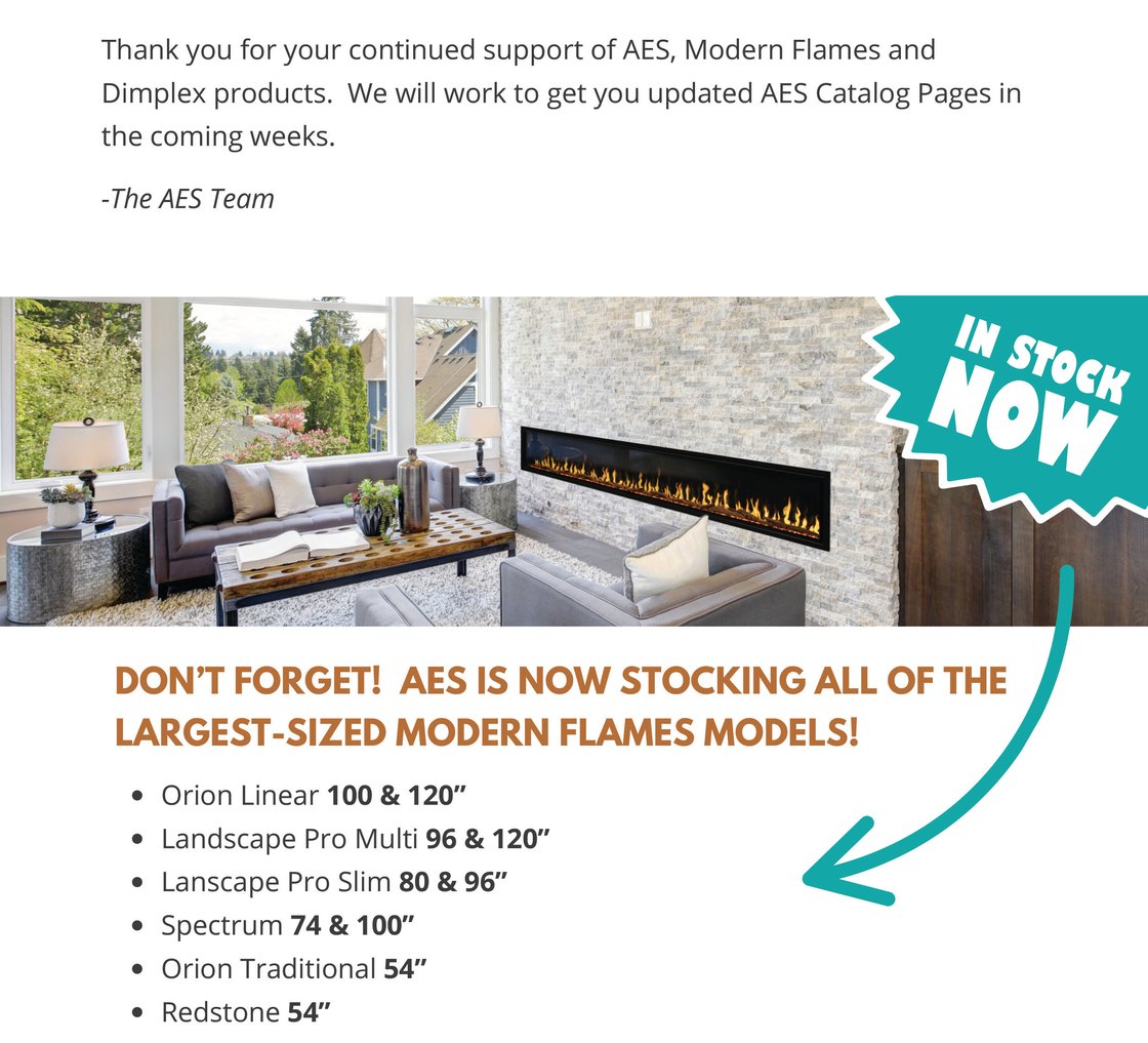Factory pages now included with amounts, Modern Flames & Dimplex May 1st