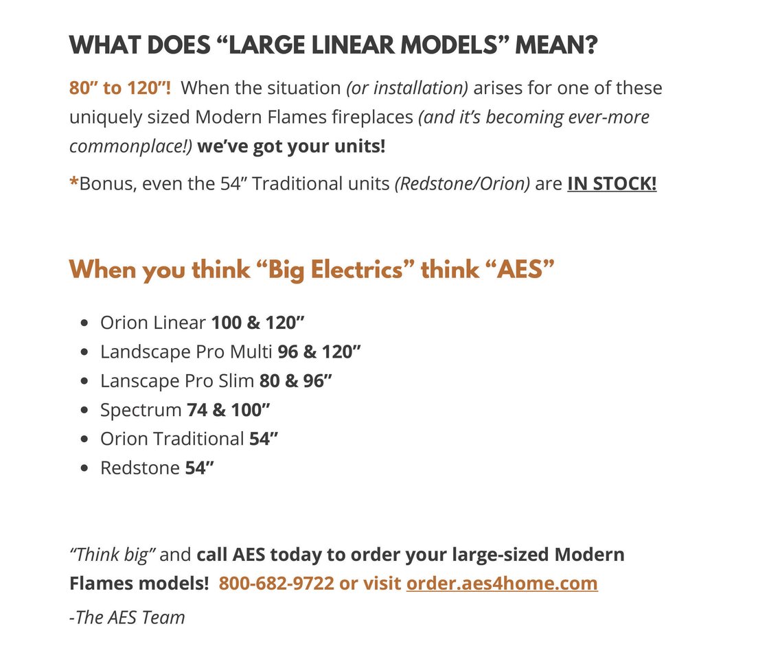 Modern Flames Largest Models IN STOCK!  Open for More...